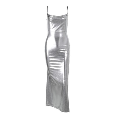 Zip-up solid v neck backless slit tube maxi dress