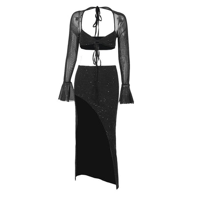 Mesh see through o ring hollow out backless tube cut out maxi dress
