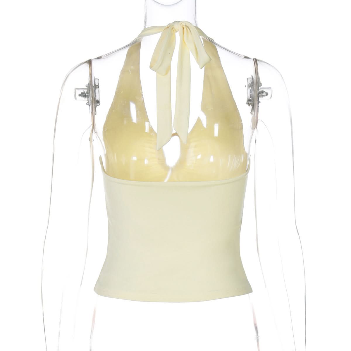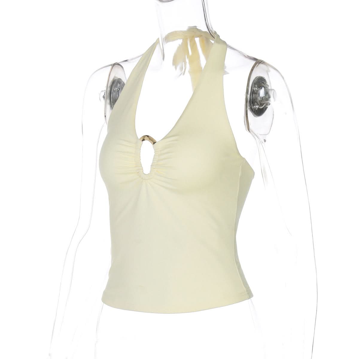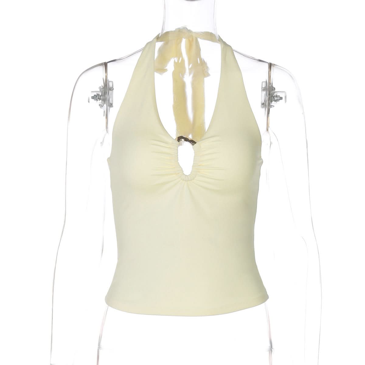 Hollow out ruched halter self tie backless cut out top