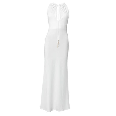 Crewneck sleeveless mesh patchwork ruched maxi dress