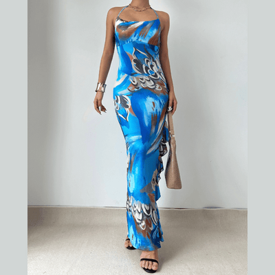 V neck leopard print long sleeve hollow out cut out maxi dress