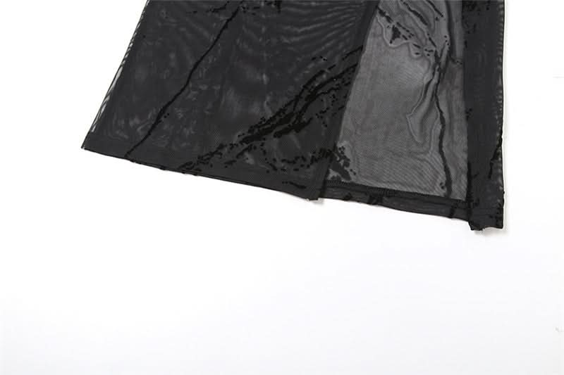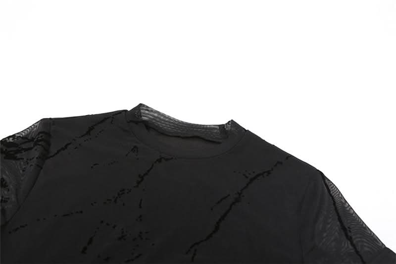 Crewneck short sleeve slit mesh midi dress