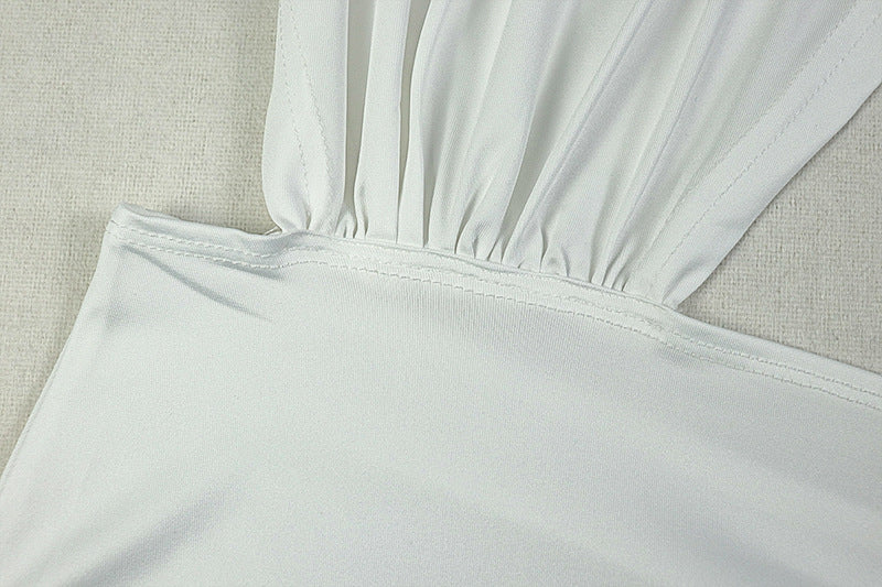 Irregular ruched halter backless mini dress