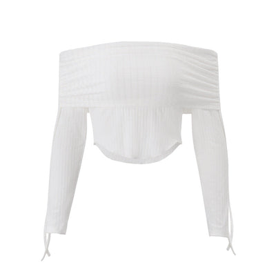 Long sleeve off shoulder drawstring crop top