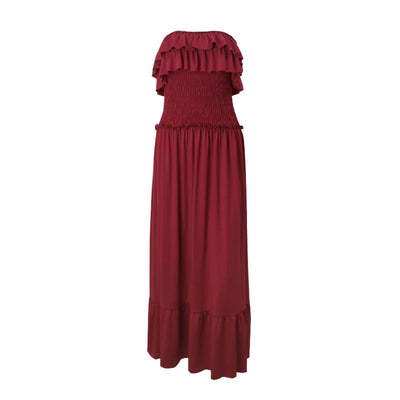 Smocked ruffle solid tube maxi dress