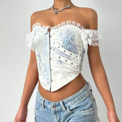 Corset zip-up print tube top