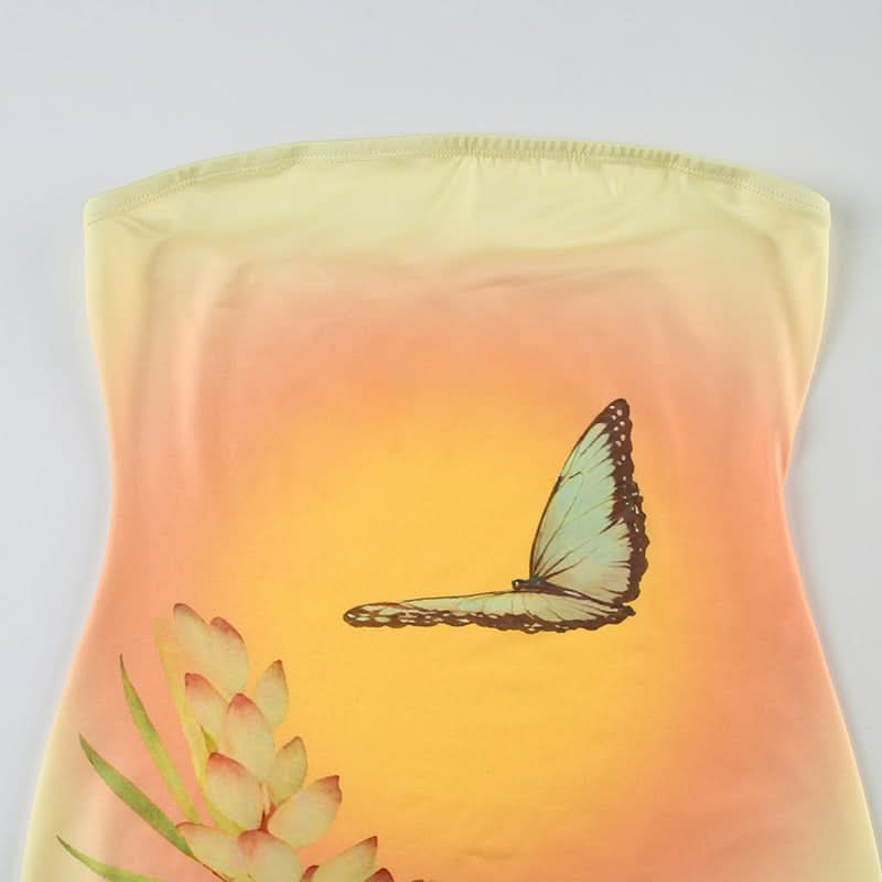 Butterfly print contrast backless tube mini dress