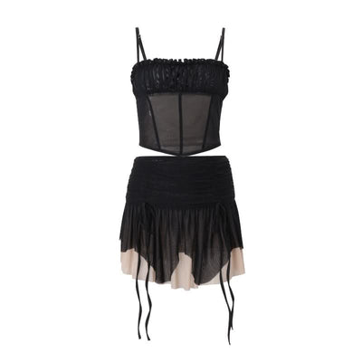 Long sleeve ruffle hollow out mesh cut out mini dress