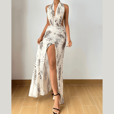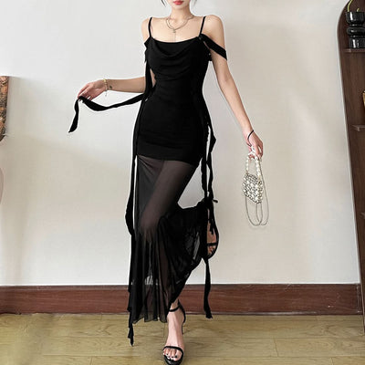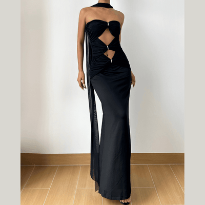 Hollow out long sleeve flower applique lace cut out maxi dress