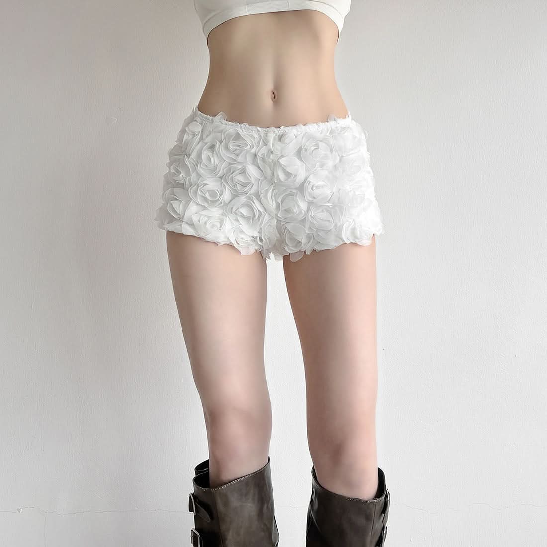 Flower applique low rise solid short pant