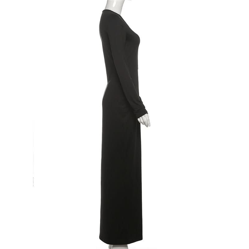Long sleeve hollow out v neck solid cut out maxi dress