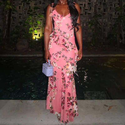 Leopard print hollow out crewneck self tie cut out maxi dress