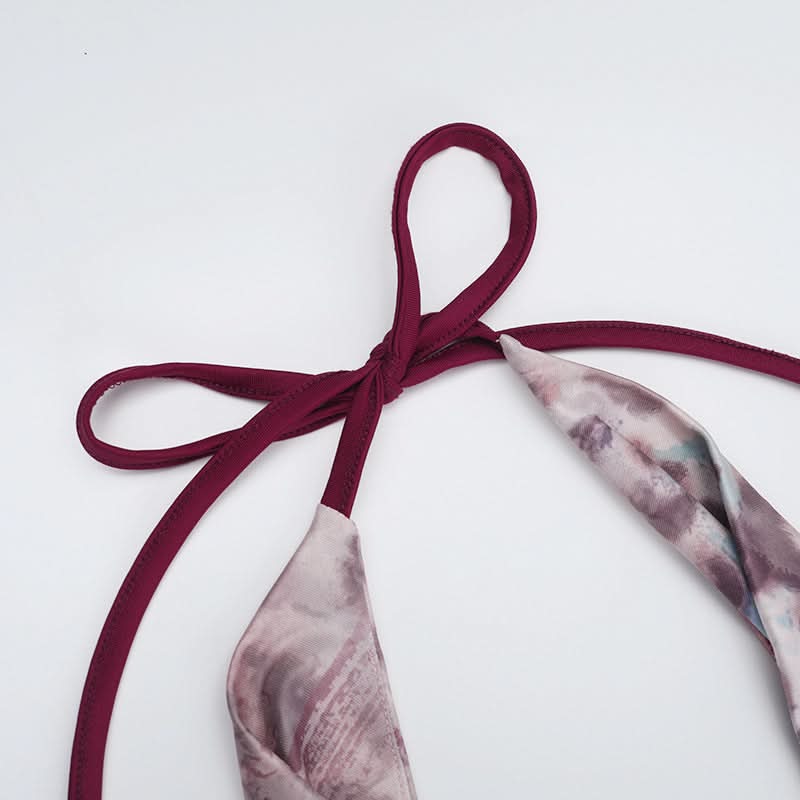 Ruched cowl neck print halter self tie maxi dress