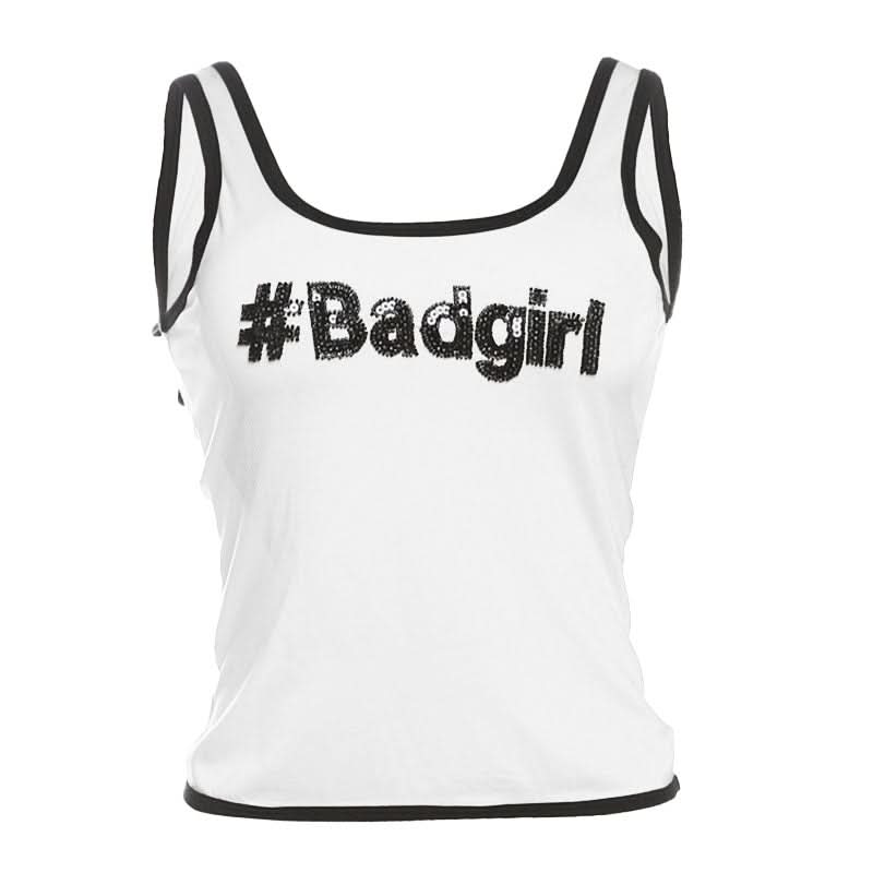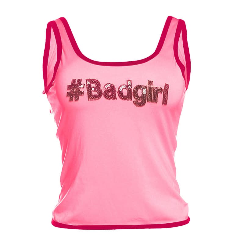 U neck "#Badgirl" pattern glitter contrast top