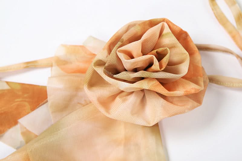Cowl neck flower applique print halter maxi dress