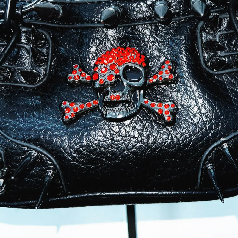 Metal chain o ring skull applique PU leather handbag | Festival Outfit