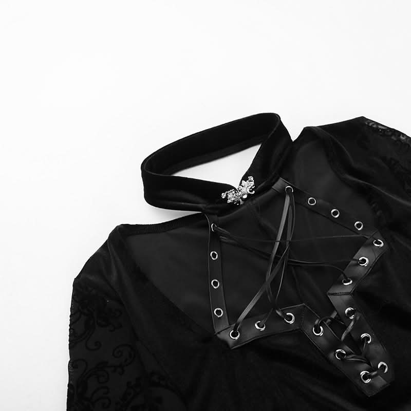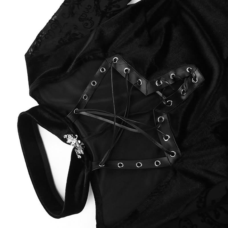 Long flared sleeve halter belt slit velvet maxi dress