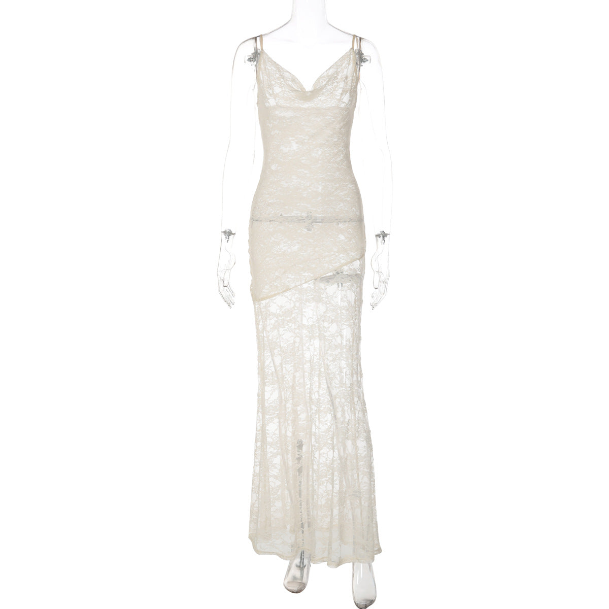 Cowl neck lace backless solid cami maxi dress