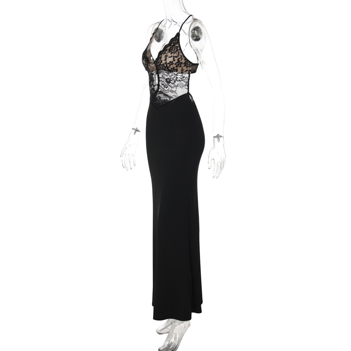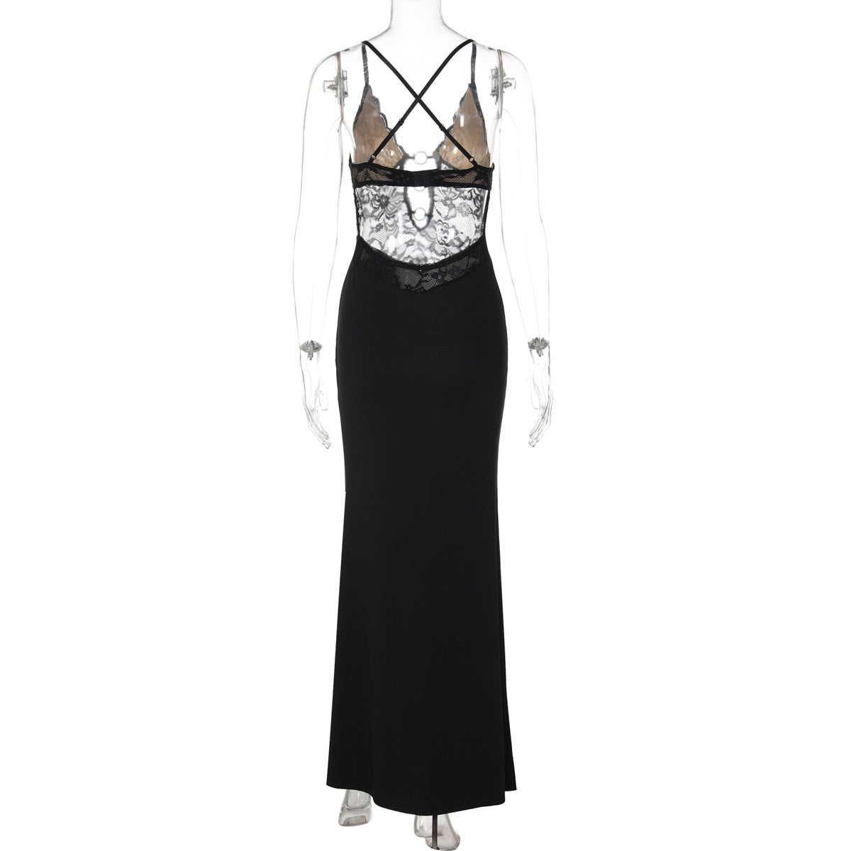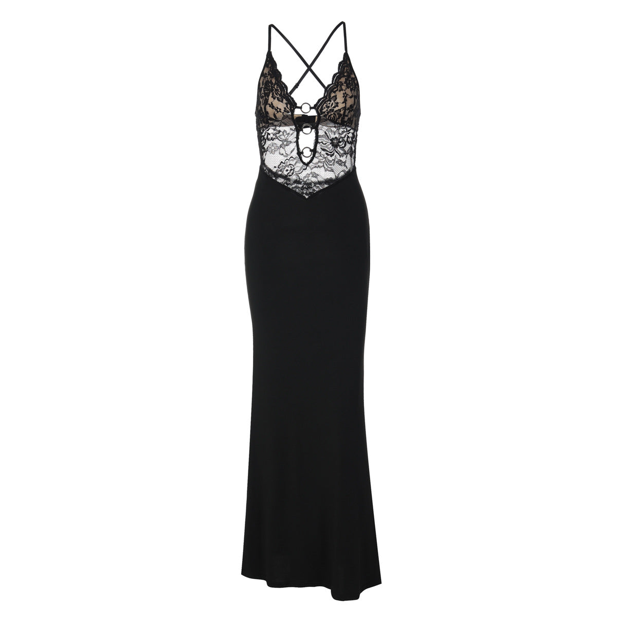 Cross back lace o ring hollow out maxi dress