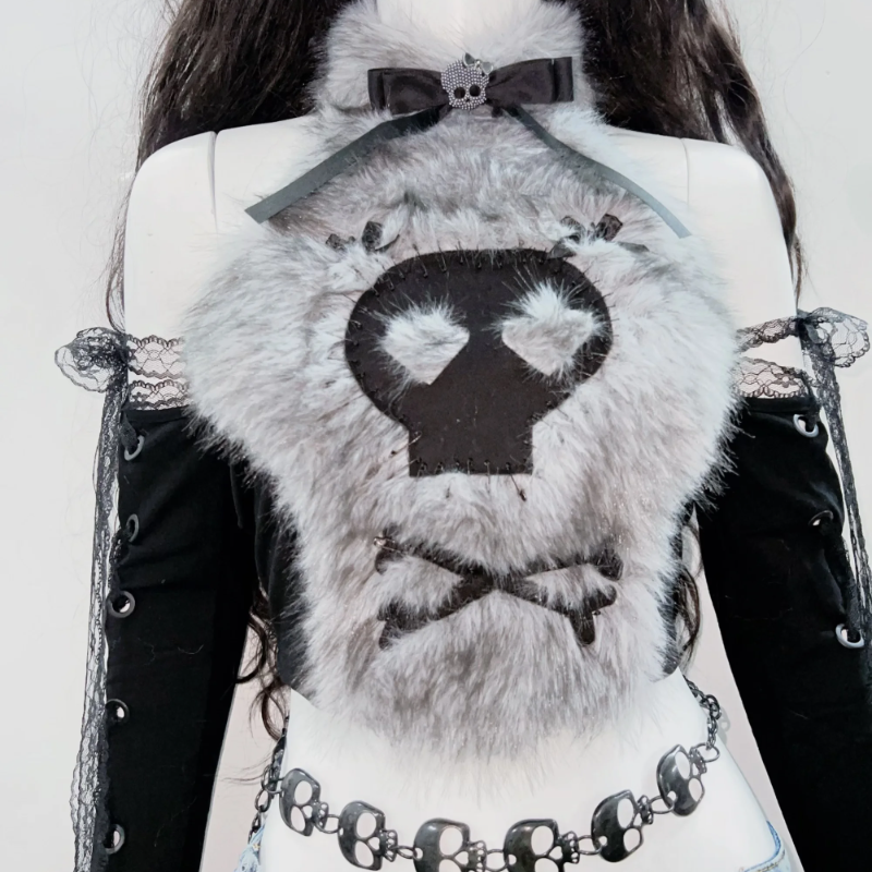 Fluffy bowknot long sleeve lace hem halter top