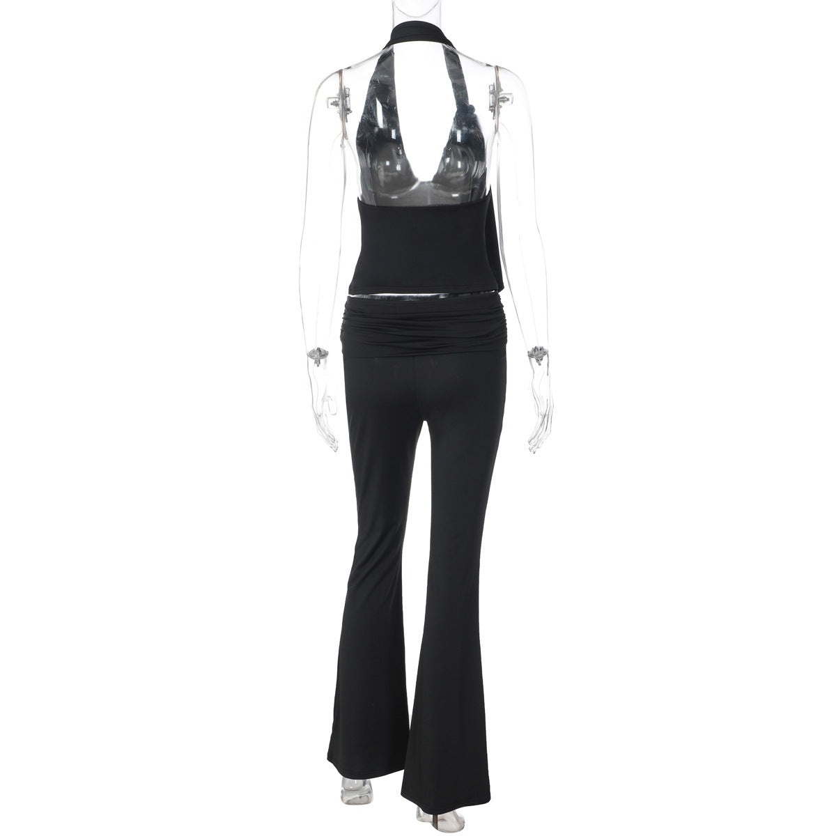 {"id":53616634396982,"title":"Black \/ S","option1":"Black","option2":"S","option3":null,"sku":"S5A20443K-BK-S","requires_shipping":true,"taxable":false,"featured_image":{"id":57418426745142,"product_id":10569218851126,"position":1,"created_at":"2026-01-28T10:09:58-04:00","updated_at":"2026-01-28T10:10:00-04:00","alt":null,"width":1200,"height":1200,"src":"\/\/halibuyfashion.com\/cdn\/shop\/files\/1771610737877tda_1769589027275.jpg?v=1769609400","variant_ids":[53616634396982,53616634429750,53616634462518]},"available":true,"name":"Halter irregular v neck backless low rise pant set - Black \/ S","public_title":"Black \/ S","options":["Black","S"],"price":4499,"weight":420,"compare_at_price":null,"inventory_management":"shopify","barcode":null,"featured_media":{"alt":null,"id":47250755551542,"position":1,"preview_image":{"aspect_ratio":1.0,"height":1200,"width":1200,"src":"\/\/halibuyfashion.com\/cdn\/shop\/files\/1771610737877tda_1769589027275.jpg?v=1769609400"}},"requires_selling_plan":false,"selling_plan_allocations":[]}