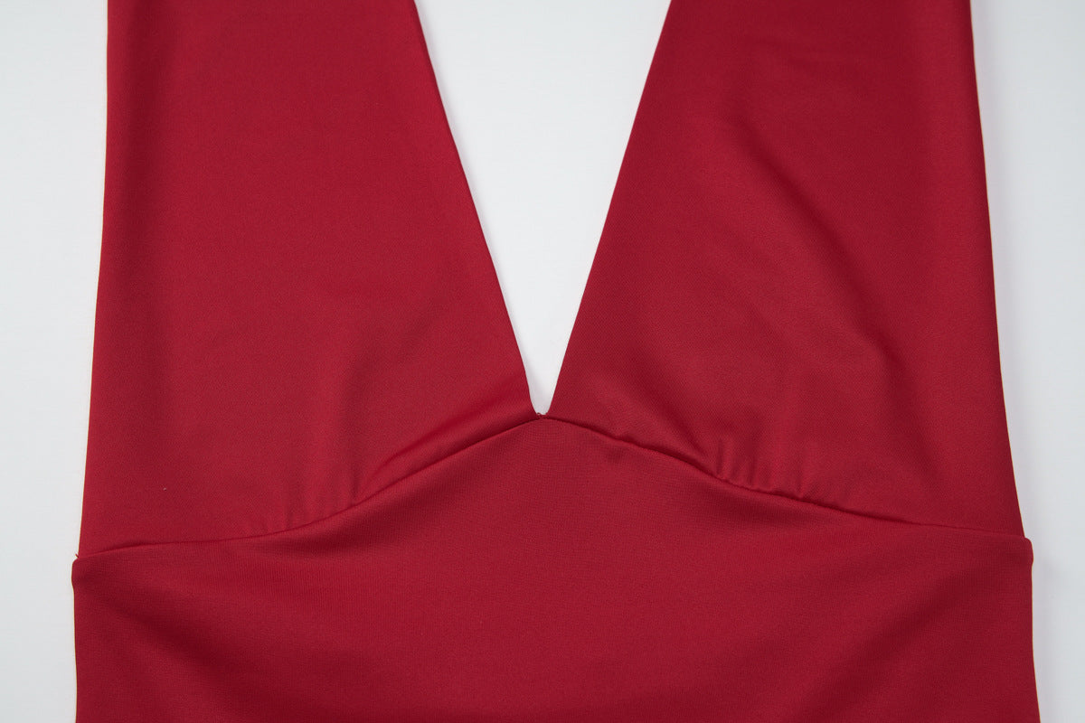 Halter self tie v neck backless solid top