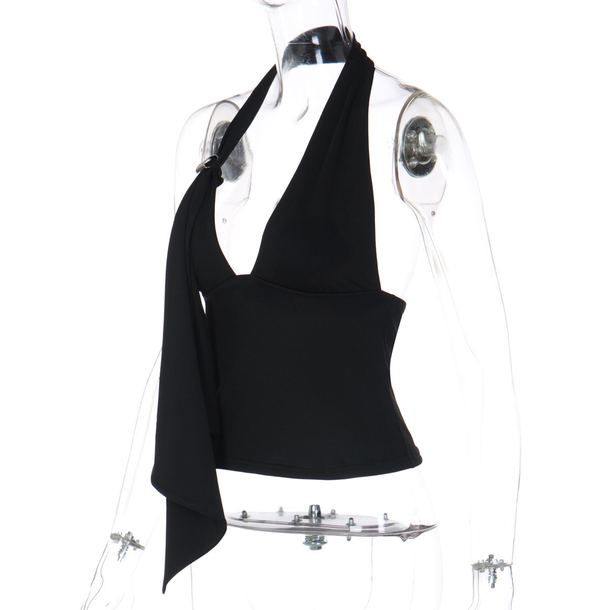 Halter v neck irregular backless solid top