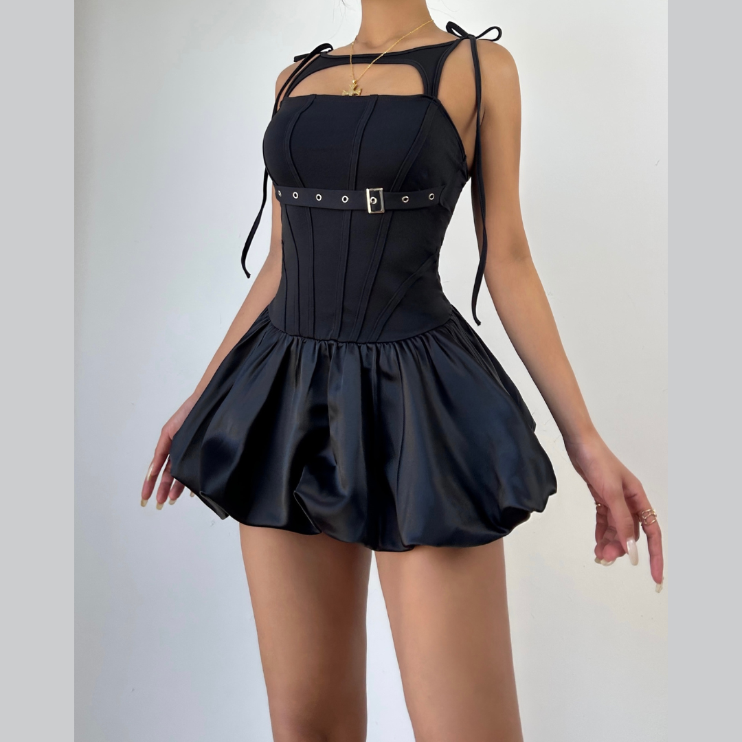 {"id":53609682272566,"title":"Black \/ S","option1":"Black","option2":"S","option3":null,"sku":"K25D87244-BK-S","requires_shipping":true,"taxable":false,"featured_image":{"id":57403834597686,"product_id":10567477788982,"position":1,"created_at":"2026-01-26T21:57:16-04:00","updated_at":"2026-01-26T21:57:35-04:00","alt":null,"width":1080,"height":1080,"src":"\/\/halibuyfashion.com\/cdn\/shop\/files\/K25D87244.png?v=1769479055","variant_ids":[53609682272566,53609682305334,53609682338102]},"available":true,"name":"Hollow out self tie ruched buckle mini dress - Black \/ S","public_title":"Black \/ S","options":["Black","S"],"price":3999,"weight":0,"compare_at_price":null,"inventory_management":"shopify","barcode":null,"featured_media":{"alt":null,"id":47237473730870,"position":1,"preview_image":{"aspect_ratio":1.0,"height":1080,"width":1080,"src":"\/\/halibuyfashion.com\/cdn\/shop\/files\/K25D87244.png?v=1769479055"}},"requires_selling_plan":false,"selling_plan_allocations":[]}