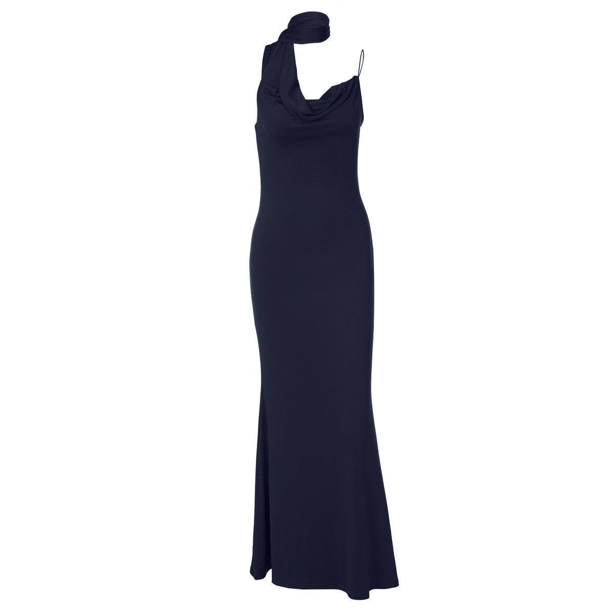 Irregular cowl neck backless spaghetti strap maxi dress