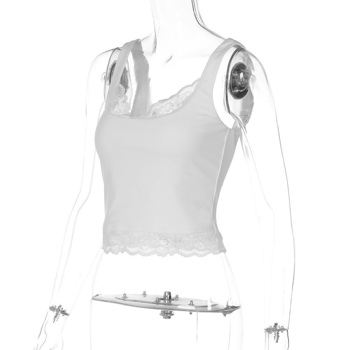 Lace hem v neck backless solid tank top