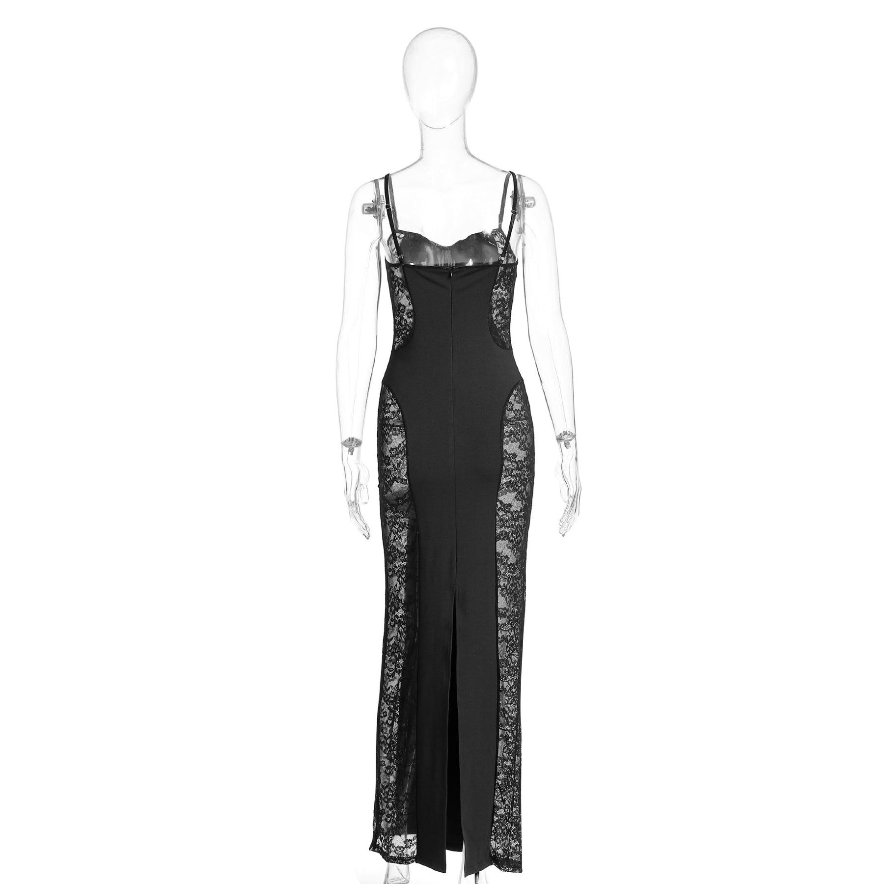 Lace slit v neck zip-up cami maxi dress
