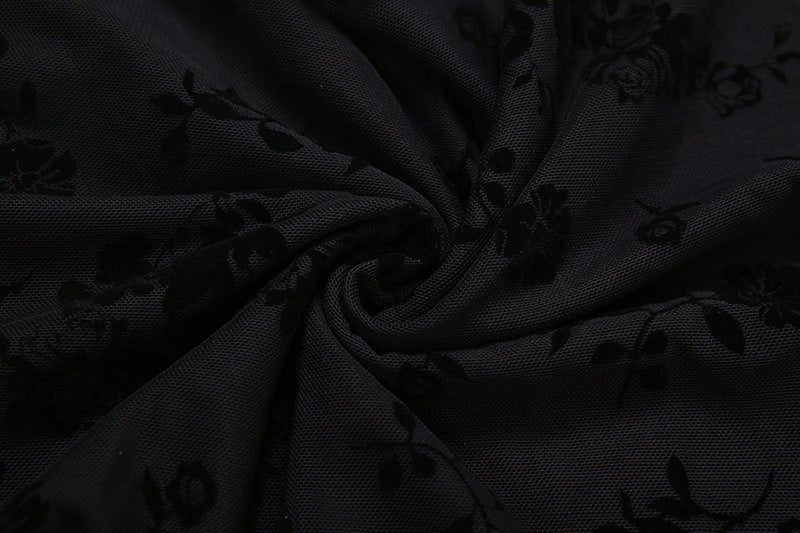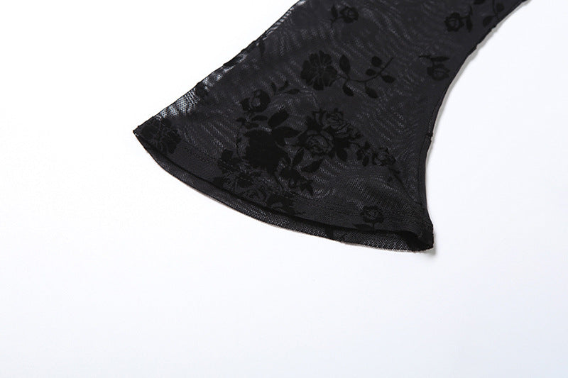 Long flared sleeve hollow out flower print cut out mini dress | Festiv