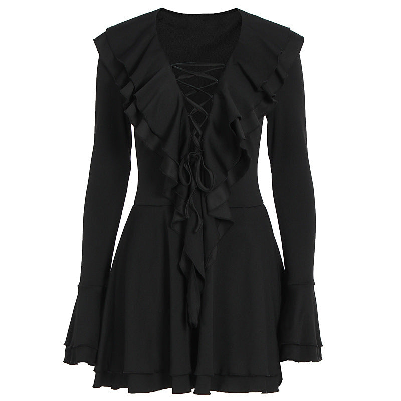 {"id":53609670410550,"title":"Black \/ S","option1":"Black","option2":"S","option3":null,"sku":"D1994978BKS","requires_shipping":true,"taxable":false,"featured_image":{"id":57398895018294,"product_id":10567476019510,"position":1,"created_at":"2026-01-26T07:48:19-04:00","updated_at":"2026-01-26T07:48:21-04:00","alt":null,"width":800,"height":800,"src":"\/\/halibuyfashion.com\/cdn\/shop\/files\/1771445755984sbz_1769424045353.jpg?v=1769428101","variant_ids":[53609670410550,53609670443318,53609670476086]},"available":true,"name":"Long flared sleeve ruffle lace up solid mini dress - Black \/ S","public_title":"Black \/ S","options":["Black","S"],"price":4899,"weight":0,"compare_at_price":null,"inventory_management":"shopify","barcode":null,"featured_media":{"alt":null,"id":47232752025910,"position":1,"preview_image":{"aspect_ratio":1.0,"height":800,"width":800,"src":"\/\/halibuyfashion.com\/cdn\/shop\/files\/1771445755984sbz_1769424045353.jpg?v=1769428101"}},"requires_selling_plan":false,"selling_plan_allocations":[]}
