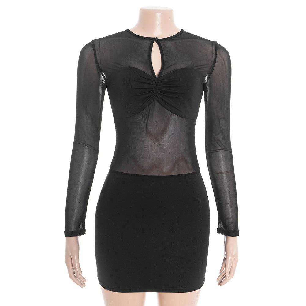 {"id":53595064336694,"title":"Black \/ S","option1":"Black","option2":"S","option3":null,"sku":"D497DS-BK-S","requires_shipping":true,"taxable":false,"featured_image":{"id":57355789926710,"product_id":10563317989686,"position":1,"created_at":"2026-01-22T02:41:04-04:00","updated_at":"2026-01-22T02:41:06-04:00","alt":null,"width":1000,"height":1000,"src":"\/\/halibuyfashion.com\/cdn\/shop\/files\/1771007270330tnw_1768985559694.jpg?v=1769064066","variant_ids":[53595064336694,53595064369462,53595064402230]},"available":true,"name":"Long sleeve crewneck hollow out ruched mesh mini dress | Festival Outfits Women - Black \/ S","public_title":"Black \/ S","options":["Black","S"],"price":1899,"weight":0,"compare_at_price":null,"inventory_management":"shopify","barcode":null,"featured_media":{"alt":null,"id":47191487217974,"position":1,"preview_image":{"aspect_ratio":1.0,"height":1000,"width":1000,"src":"\/\/halibuyfashion.com\/cdn\/shop\/files\/1771007270330tnw_1768985559694.jpg?v=1769064066"}},"requires_selling_plan":false,"selling_plan_allocations":[]}