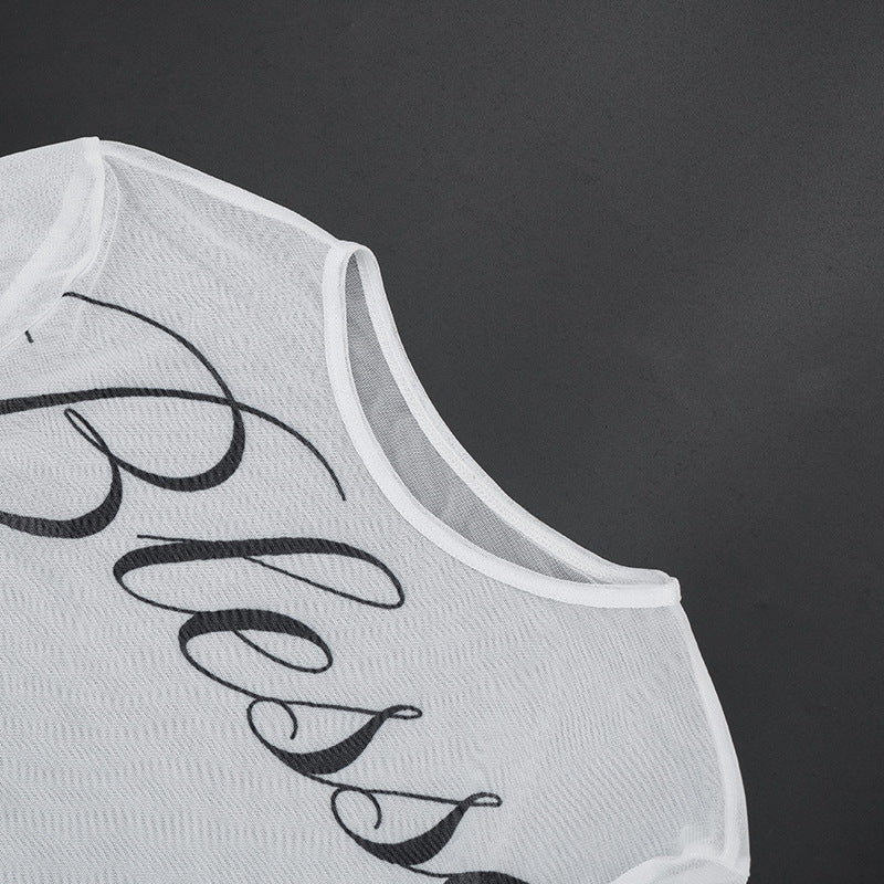 Long sleeve crewneck mesh letter pattern gloves pant set