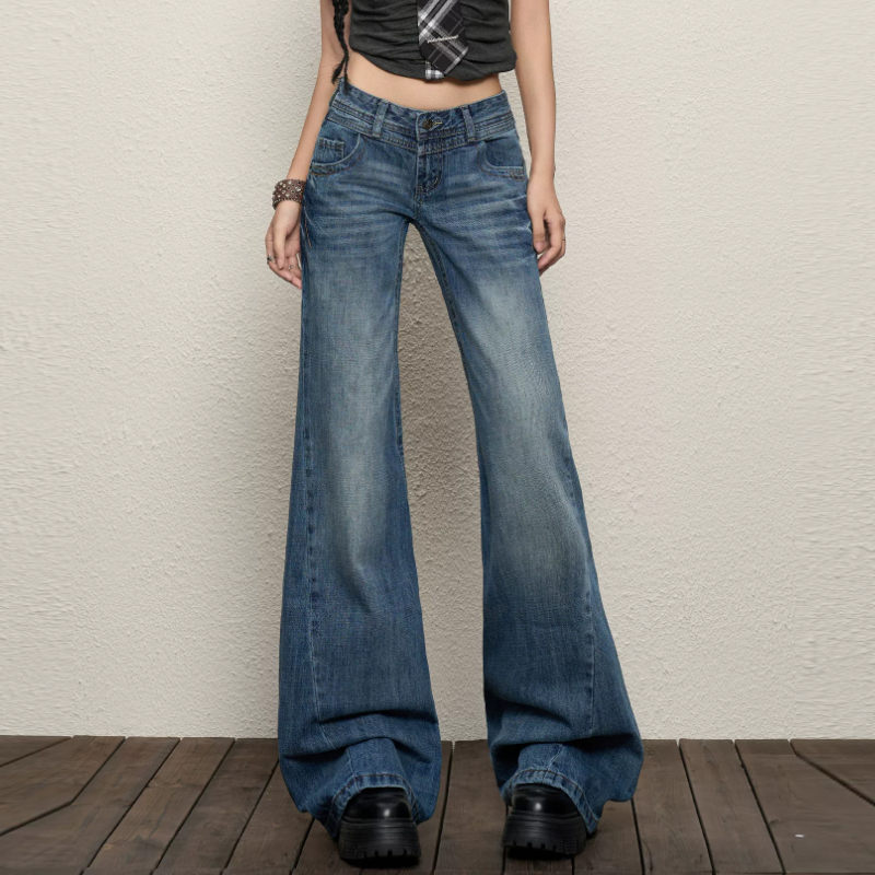 Pocket zip-up button low rise straight leg | Baggy Low Rise Jeans