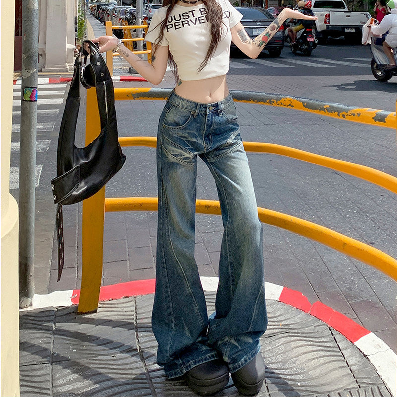 Pocket zip-up button low rise wide leg | Baggy Low Rise Jeans