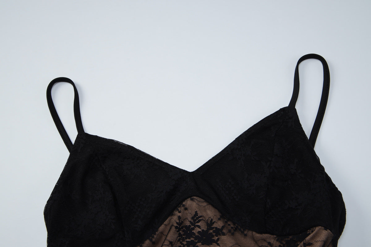 V neck lace backless cami maxi dress