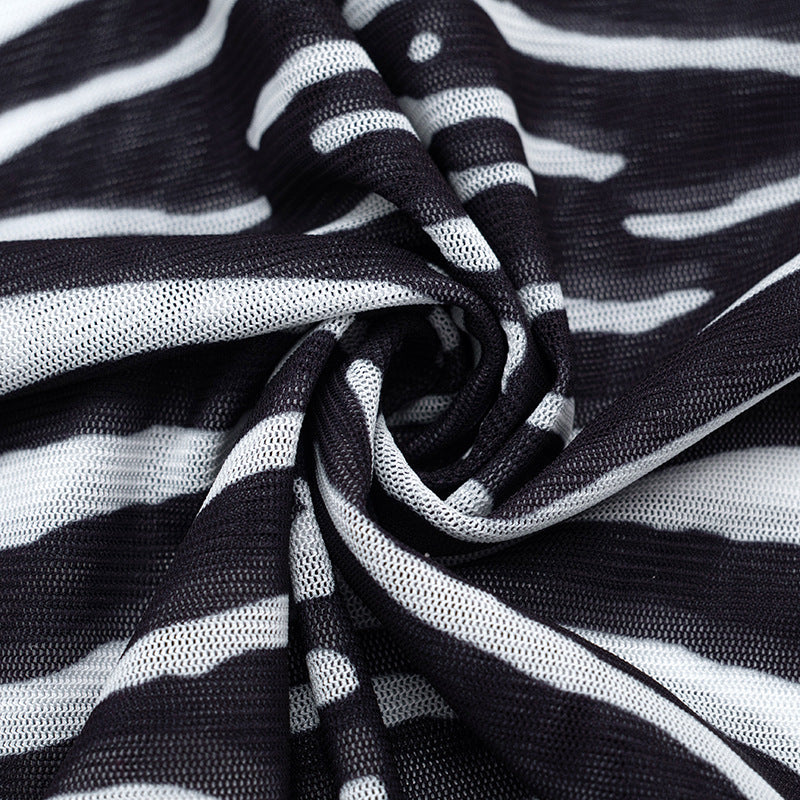 Zebra print long sleeve crewneck sheer mesh top | Festival Outfits Wom