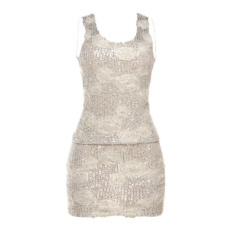 Glitter u neck flower applique tank mini skirt set | Festival Outfits Women