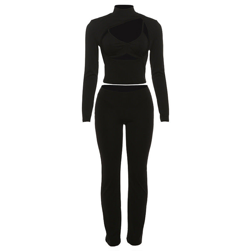 Long sleeve hollow out medium rise 3 piece pant set | Festival Outfits Women