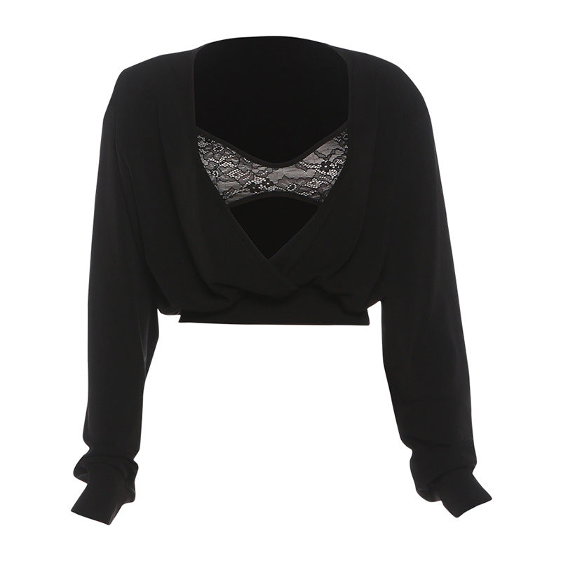 Long sleeve lace v neck cami crop 2 piece top | Festival Outfits Women