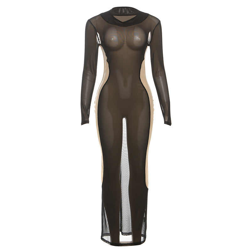 Sheer mesh long sleeve crewneck maxi dress | Festival Outfits Women