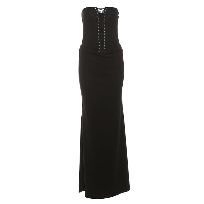 Hollow out self tie backless tube cut out maxi dress | Festival Outfits Women