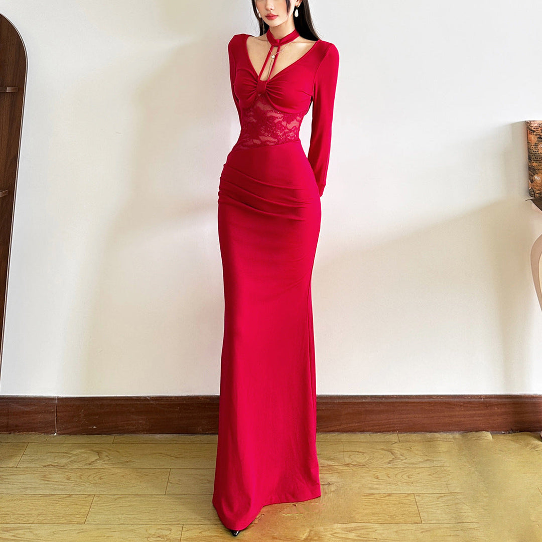 Long sleeve v neck lace maxi dress | Festival Outfits Women