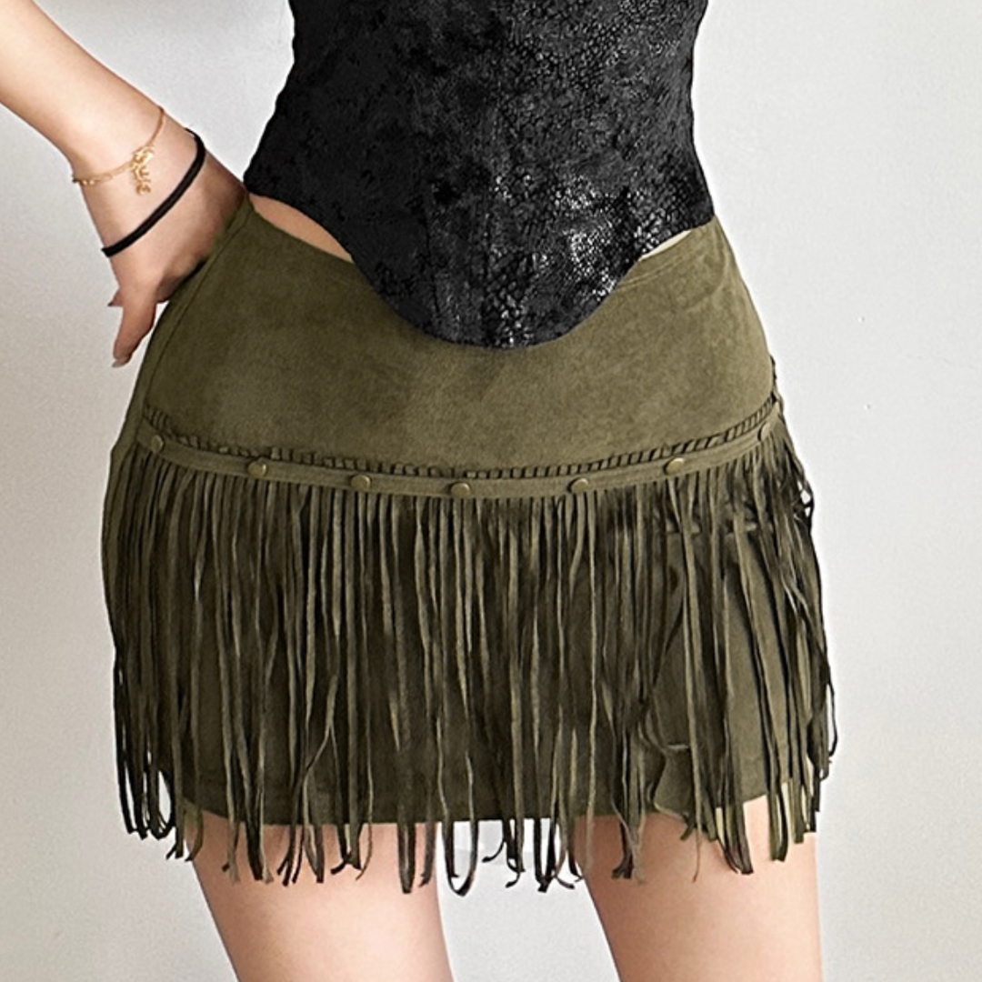Tassels solid A line mini skirt | Festival Outfits Women