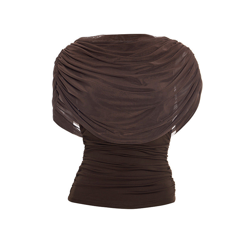 Ruched crewneck mesh solid top