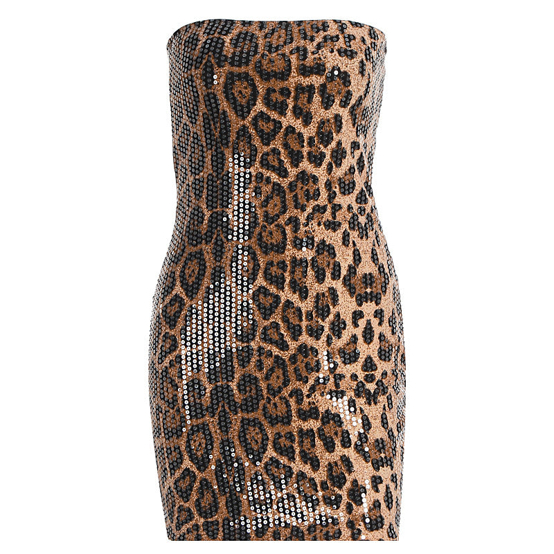 Leopard print glitter backless tube mini dress | Leopard Print Mini Dress