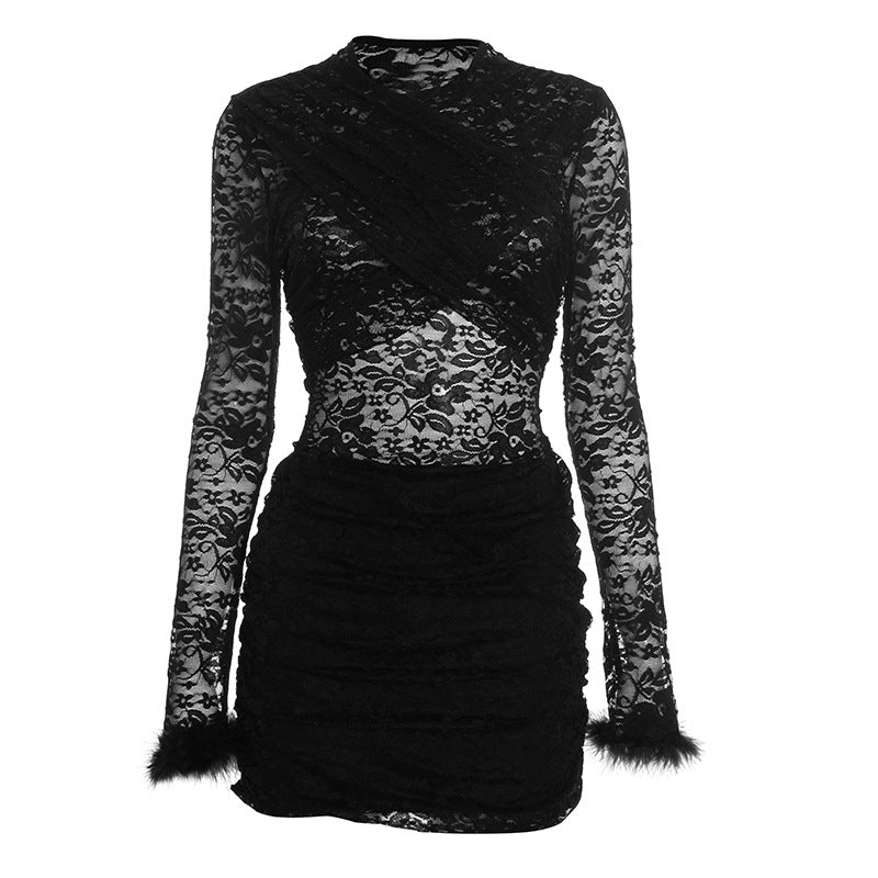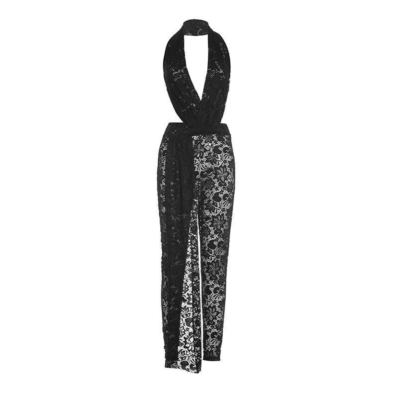 Long sleeve crewneck mesh letter pattern gloves pant set