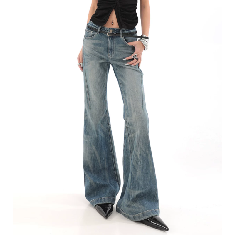 Button cat whisker pocket low rise jeans | Baggy Low Rise Jeans